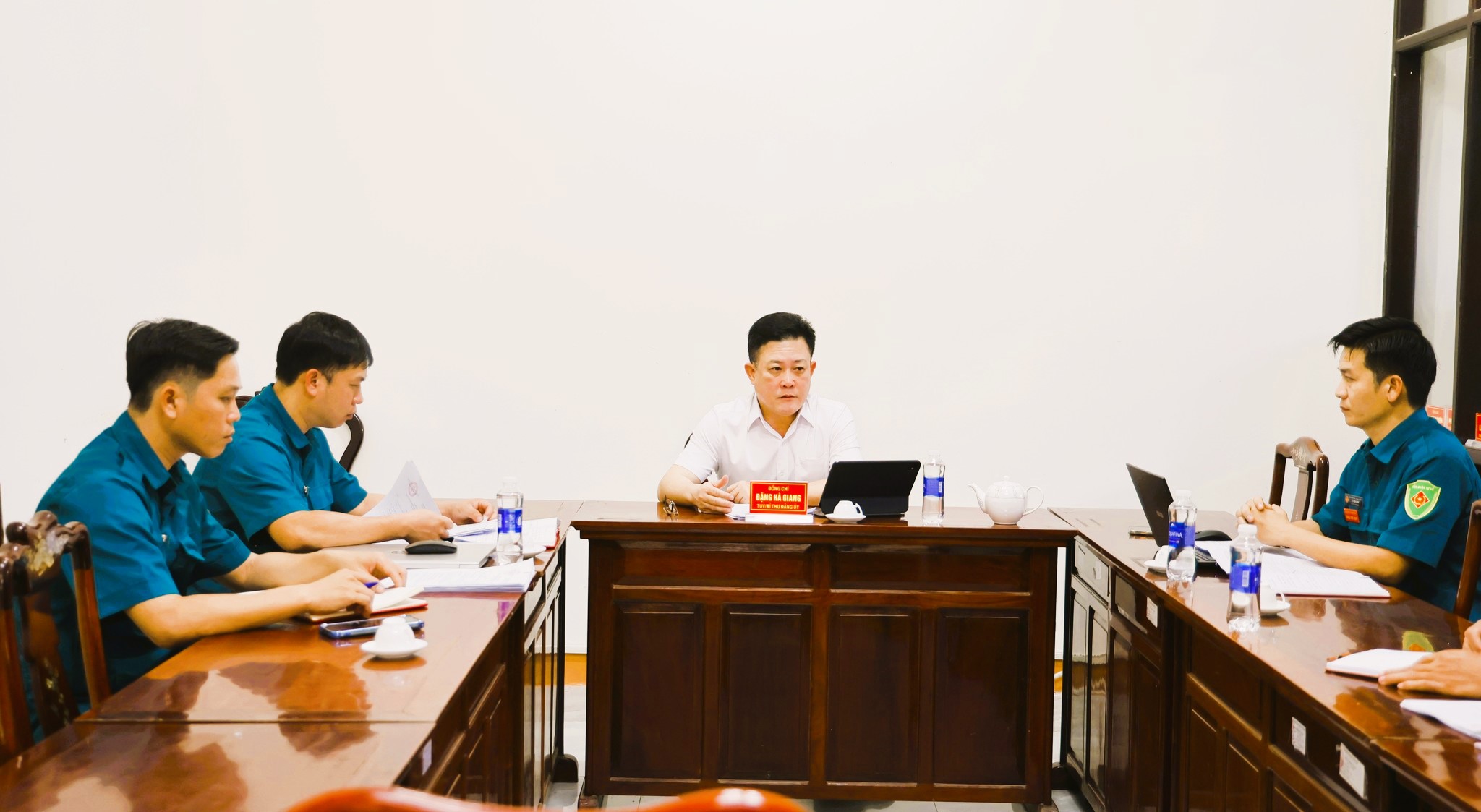 Đồng chí Đặng Hà Giang - Tỉnh ủy viên, Bí thư Đảng ủy, Chủ tịch HĐND xã, Bí thư Chi bộ Ban Chỉ huy Quân sự xã chủ trì hội nghị.