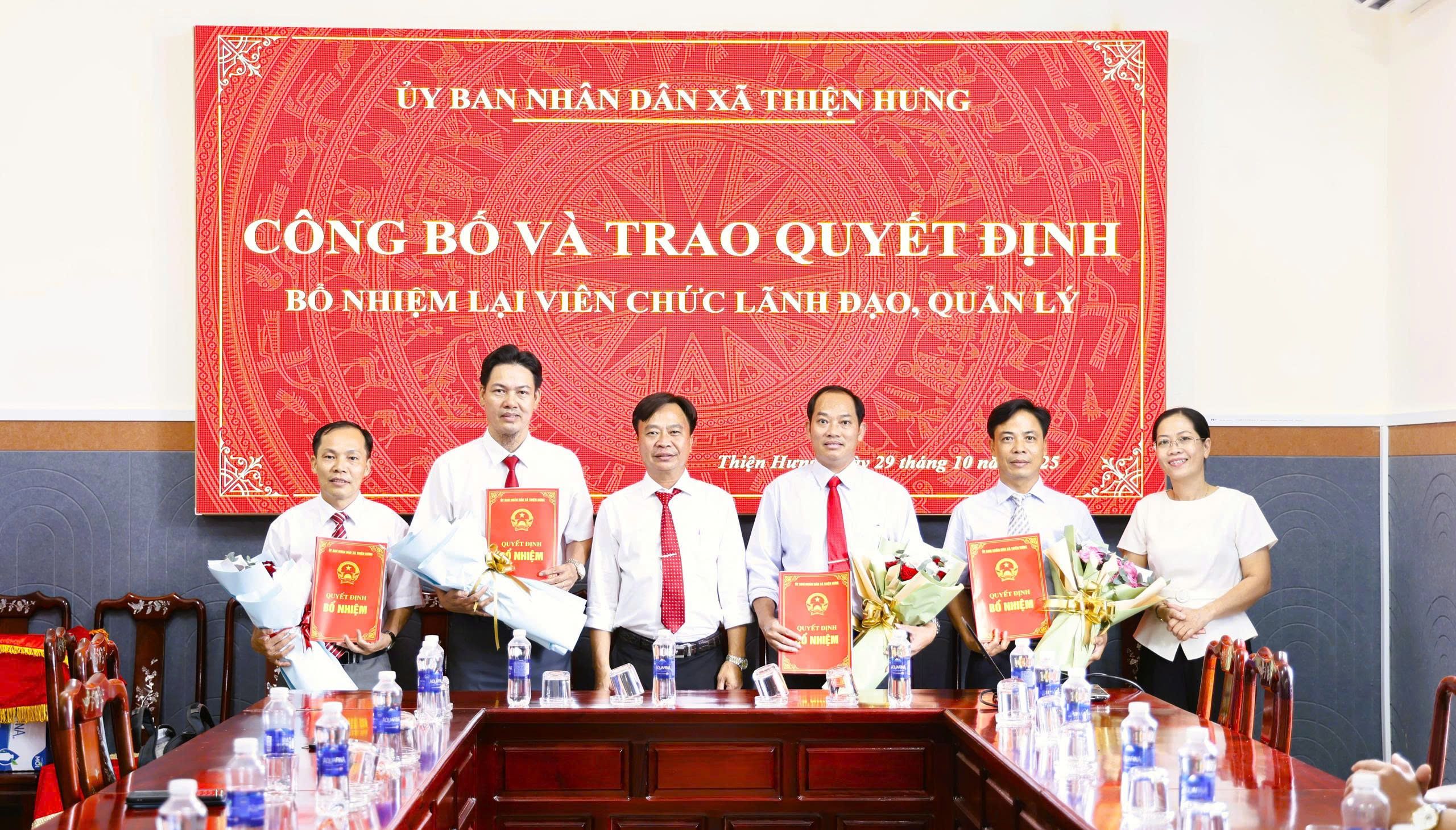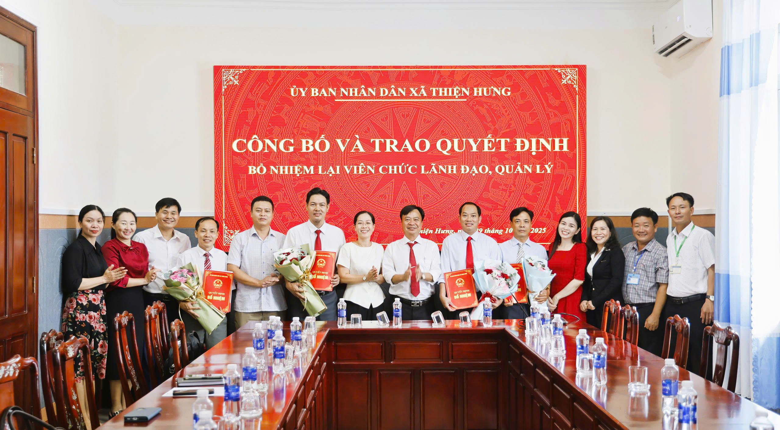Tại hội nghị, đồng chí Lê Văn Toàn – Trưởng Phòng văn hoá – xã hội đã thông qua các Quyết định của UBND xã Thiện Hưng về việc bổ nhiệm lại viên chức lãnh đạo, quản lý, cụ thể: Quyết định bổ nhiệm lại cho các đồng chí Phan Văn Quân - Hiệu trưởng Trường PTDTNT THCS Bù Đốp; đồng chí Nguyễn Hồng Thi - Phó Hiệu trưởng Trường PTDTNT THCS Bù Đốp; đồng chí Phùng Mỹ Hùng - Phó Hiệu trưởng Trường THCS Thanh Bình; đồng chí Hoàng Văn Mạnh - Phó Hiệu trưởng Trường THCS Bù Đốp. Thời hạn bổ nhiệm giữ chức vụ là 5 năm.