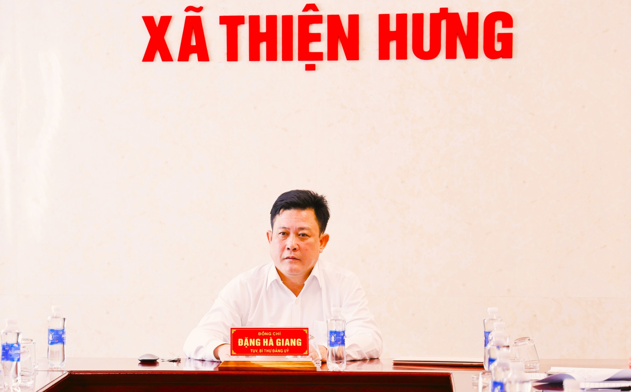 Đồng chí Đặng Hà Giang – Tỉnh ủy viên, Bí thư Đảng ủy, Chủ tịch HĐND xã, Chủ tịch Ủy ban bầu cử xã Thiện Hưng phát biểu kết luận cuộc họp