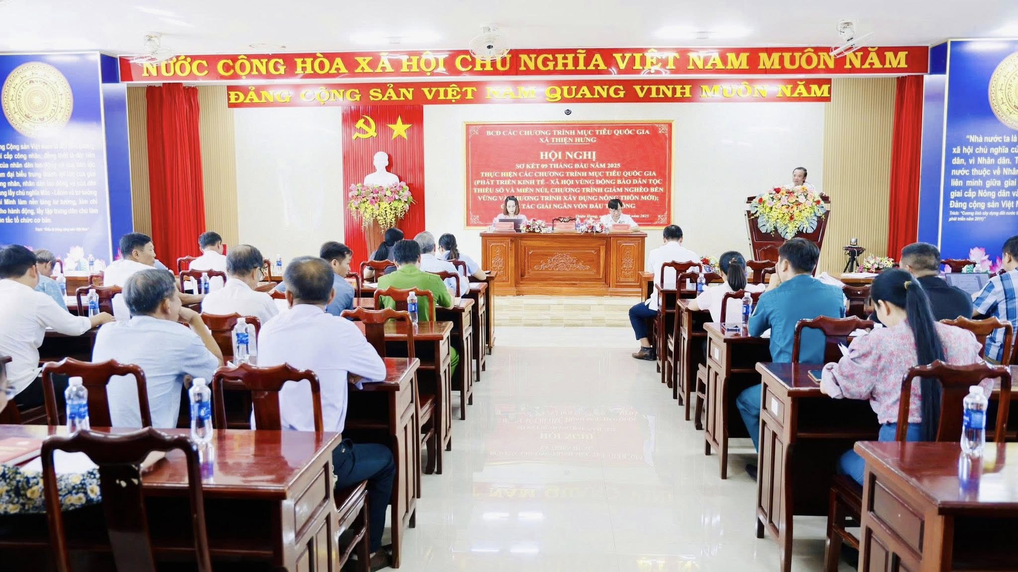 Trong 9 tháng qua, công tác giảm nghèo, an sinh xã hội và xây dựng nông thôn mới trên địa bàn xã Thiện Hưng tiếp tục được triển khai đồng bộ, đạt nhiều kết quả tích cực. Toàn xã hiện còn 31 hộ nghèo và 88 hộ cận nghèo; các hộ nghèo có khả năng lao động được hỗ trợ bò giống, vốn vay, sinh kế để vươn lên thoát nghèo bền vững. Phối hợp Trung đoàn 717 – Binh đoàn 16 cấp 43 con bò giống cho hộ nghèo, đồng thời đề xuất cuối năm 2025 hỗ trợ thêm 15 con. Giải quyết việc làm cho 1.280 lao động đạt 170,6% so với chỉ tiêu, đào tạo nghề cho 353 lao động đạt 185,78% so với chỉ tiêu.