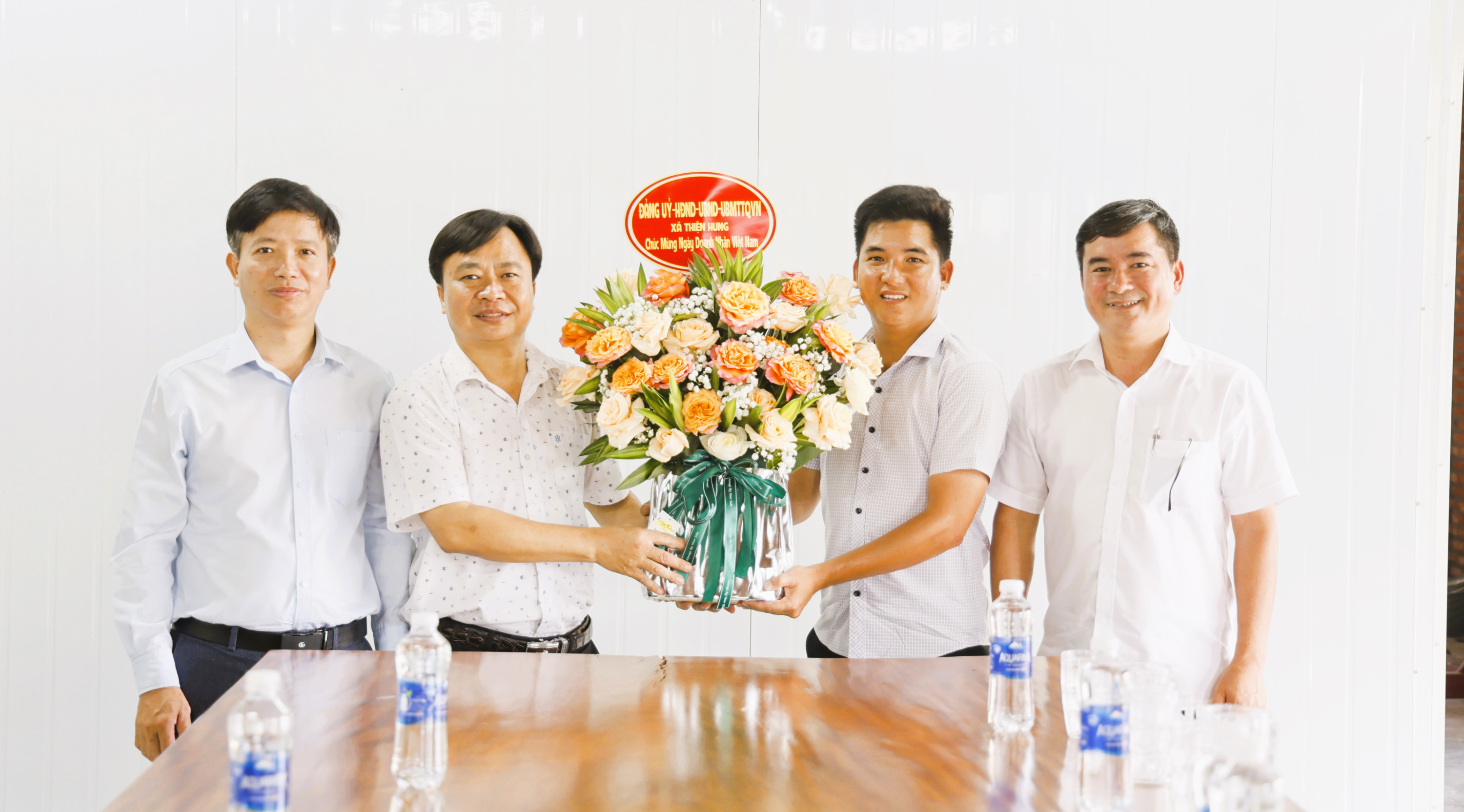 Dịp này, Đảng ủy - HĐND – UBND – UBMTTQ Việt Nam xã Thiện Hưng đã trao tặng các Công ty, doanh nghiệp những lẵng hoa tươi thắm chúc mừng nhân ngày Doanh nhân Việt Nam 13-10.