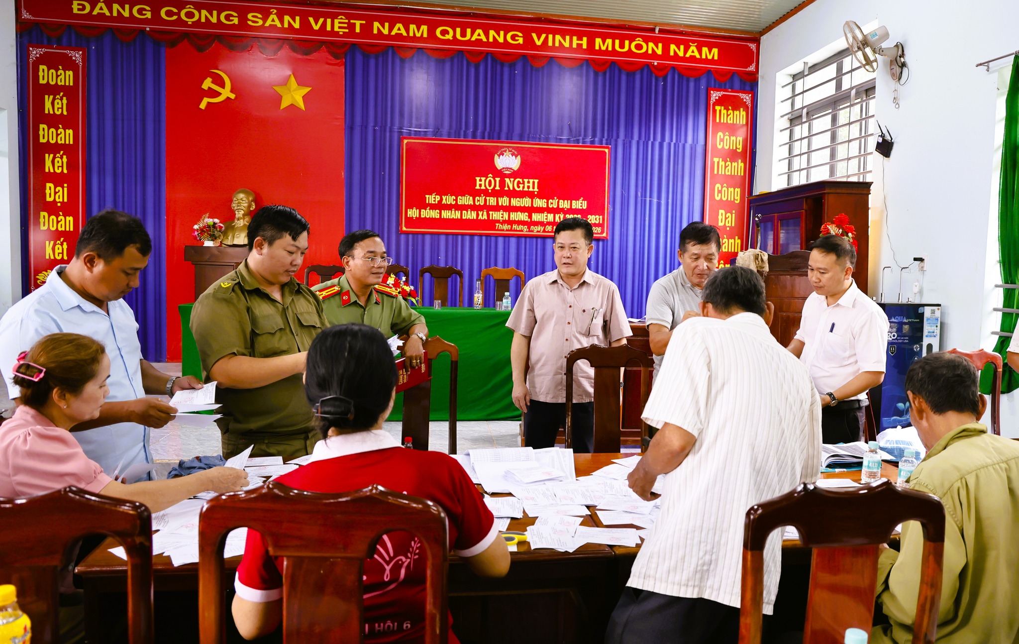 Nhằm bảo đảm công tác chuẩn bị cho cuộc bầu cử đại biểu Quốc hội khóa XVI và đại biểu HĐND các cấp nhiệm kỳ 2026–2031 được triển khai nghiêm túc, đúng quy định. Chiều ngày 5-3, đồng chí Đặng Hà Giang – Tỉnh ủy viên, Bí thư Đảng ủy, Chủ tịch HĐND xã Thiện Hưng, Trưởng Ban Chỉ đạo, Chủ tịch Ủy ban bầu cử xã đã trực tiếp đi kiểm tra công tác chuẩn bị bầu cử tại các ấp 14, 15, 17 và ấp Thanh Trung. Tham gia cùng đoàn có Thượng tá Hồ Văn Sáng – Trưởng công an xã; đồng chí Nguyễn Hữu Lê – Chánh văn phòng đảng uỷ xã.