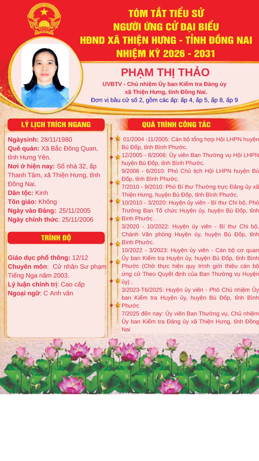 <p style="text-align:center;"><span class="text-big" style="color:hsl(0,75%,60%);font-family:&#039;Times New Roman&#039;, Times, serif;"><strong>ĐƠN VỊ BẦU CỬ SỐ 2 GỒM CÁC ẤP: ẤP 4, ẤP 5, ẤP 8, ẤP 9</strong></span></p><figure class="image"><img style="aspect-ratio:1080/1920;" src="https://thienhung.dongnai.gov.vn/uploads/thienhung/news/2026_03/pham-thi-thao_3.png" width="1080" height="1920" /></figure><figure class="image"><img style="aspect-ratio:1080/1920;" src="https://thienhung.dongnai.gov.vn/uploads/thienhung/news/2026_03/nguyen-si-quoc_4.png" width="1080" height="1920" /></figure><figure class="image"><img style="aspect-ratio:1080/1920;" src="https://thienhung.dongnai.gov.vn/uploads/thienhung/news/2026_03/nguyen-hong-thi_2.png" width="1080" height="1920" /></figure><figure class="image"><img style="aspect-ratio:1080/1920;" src="https://thienhung.dongnai.gov.vn/uploads/thienhung/news/2026_03/tran-dinh-van_3.png" width="1080" height="1920" /></figure><figure class="image"><img style="aspect-ratio:1080/1920;" src="https://thienhung.dongnai.gov.vn/uploads/thienhung/news/2026_03/tran-thi-thu-hong_3.png" width="1080" height="1920" /></figure>