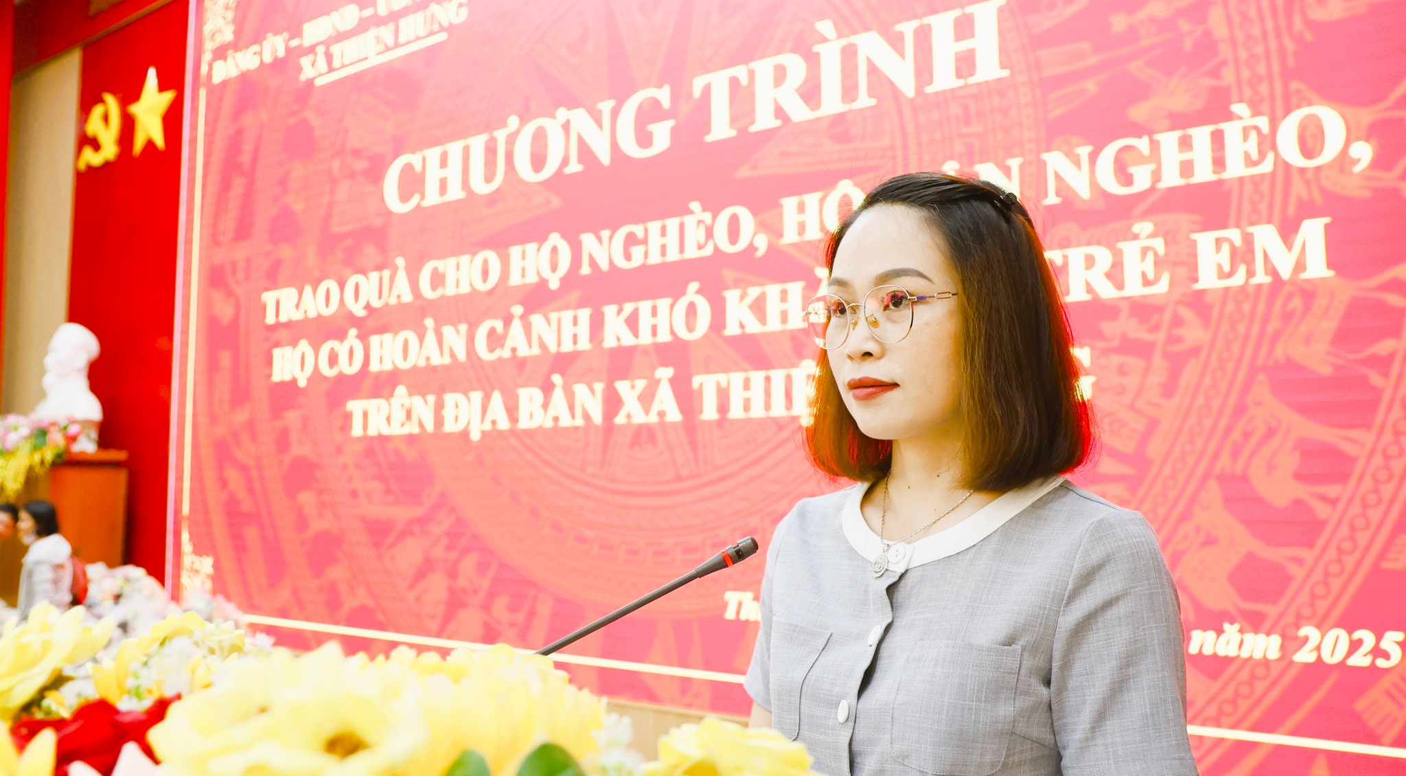 Phát biểu tại buổi trao quà, Phó chủ tịch UBND xã Phan Thị Thu Trang đã gửi lời cảm ơn sâu sắc đến Công ty TNHH Cung ứng Phát Nguyên và các doanh nghiệp, mạnh thường quân đã chung tay cùng địa phương chăm lo đời sống nhân dân, góp phần lan tỏa tinh thần đoàn kết, sẻ chia trong cộng đồng.
