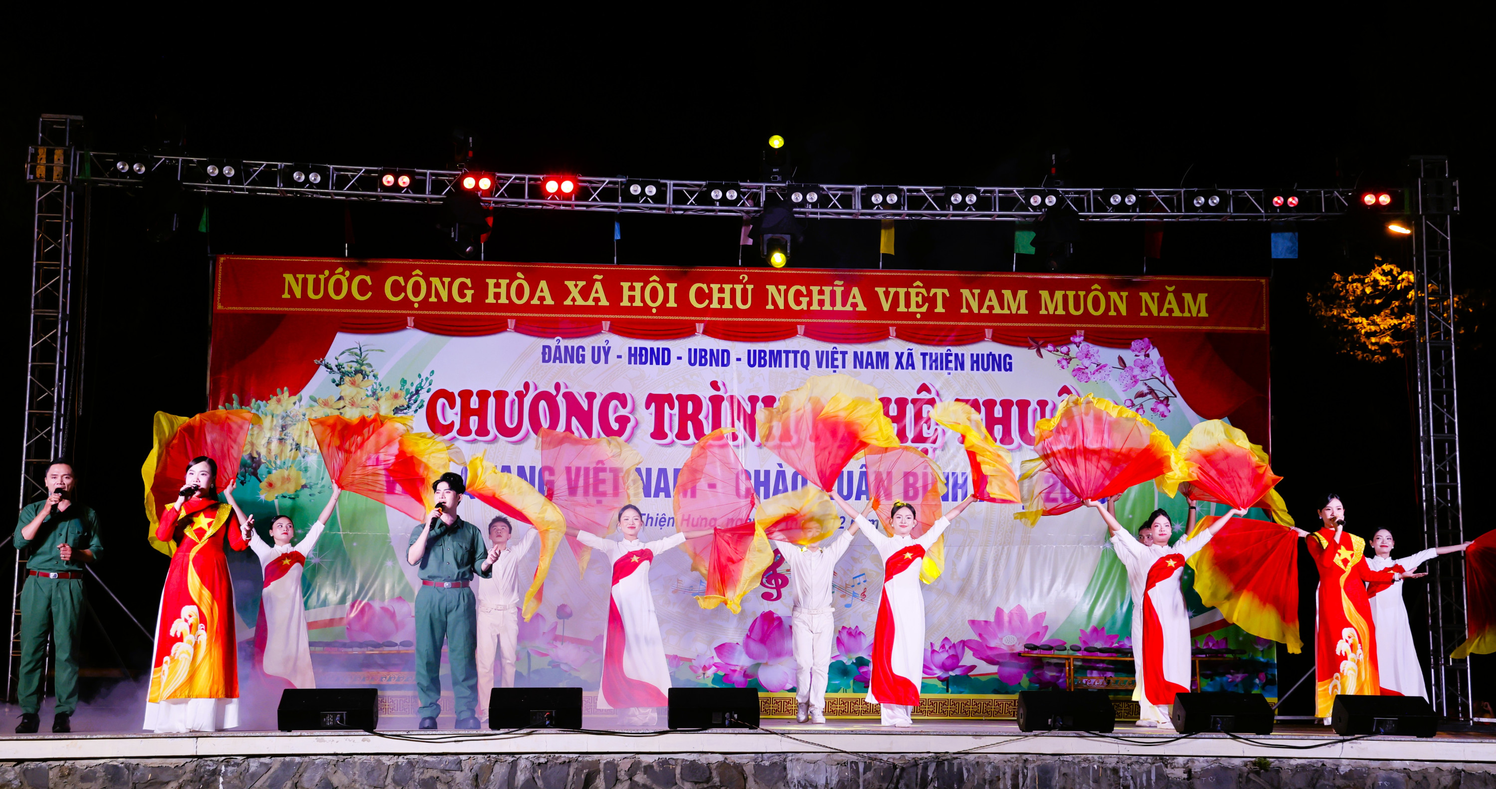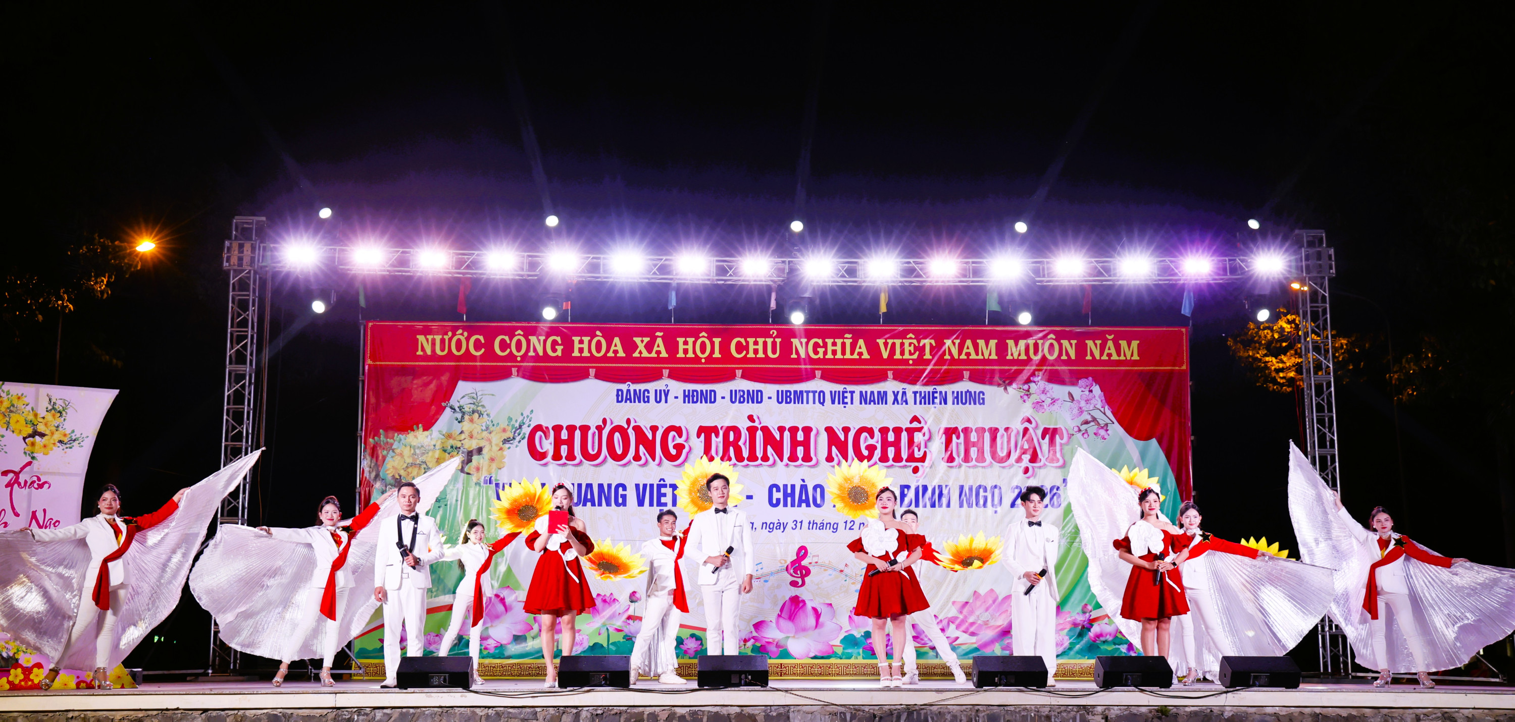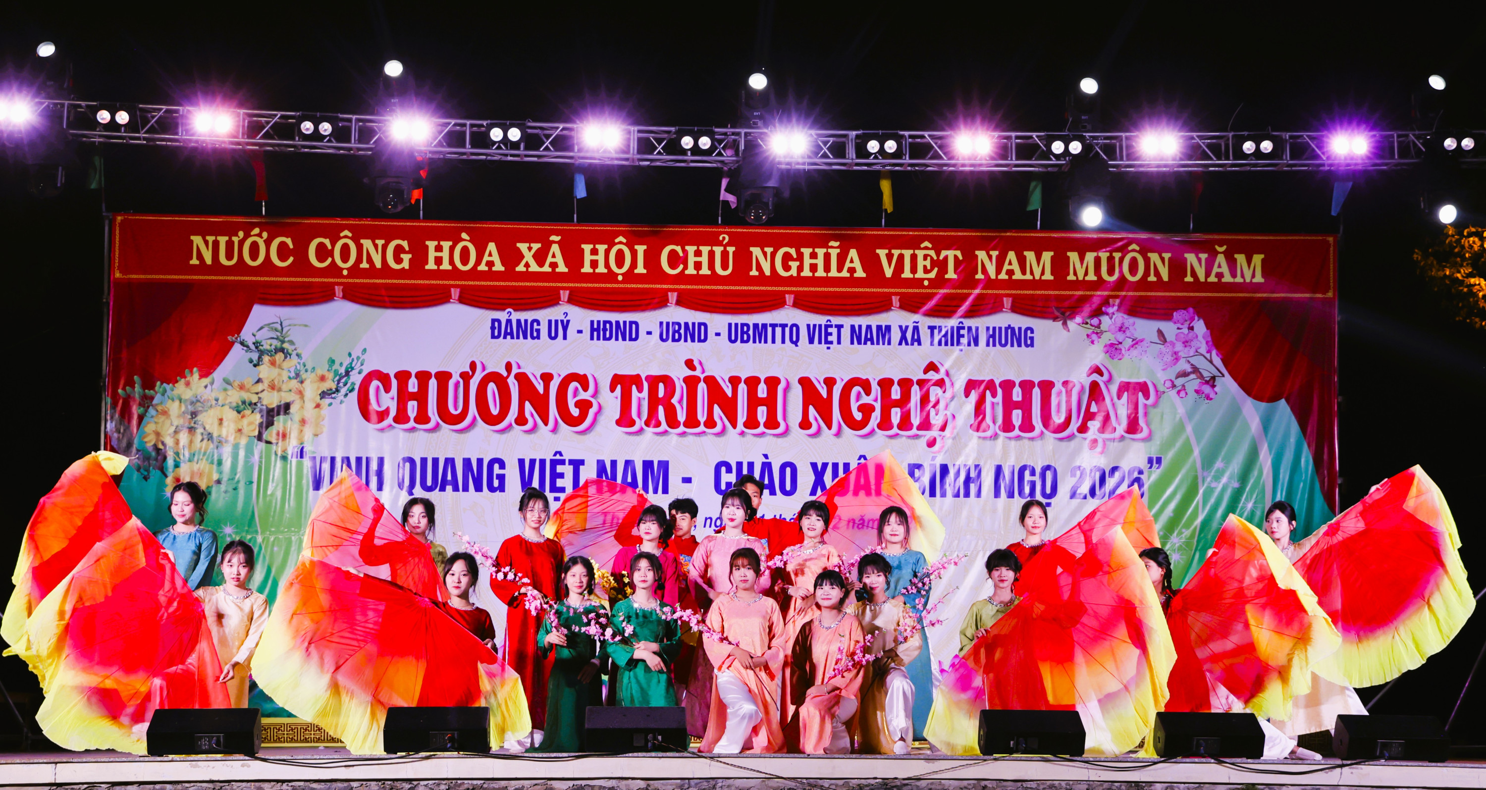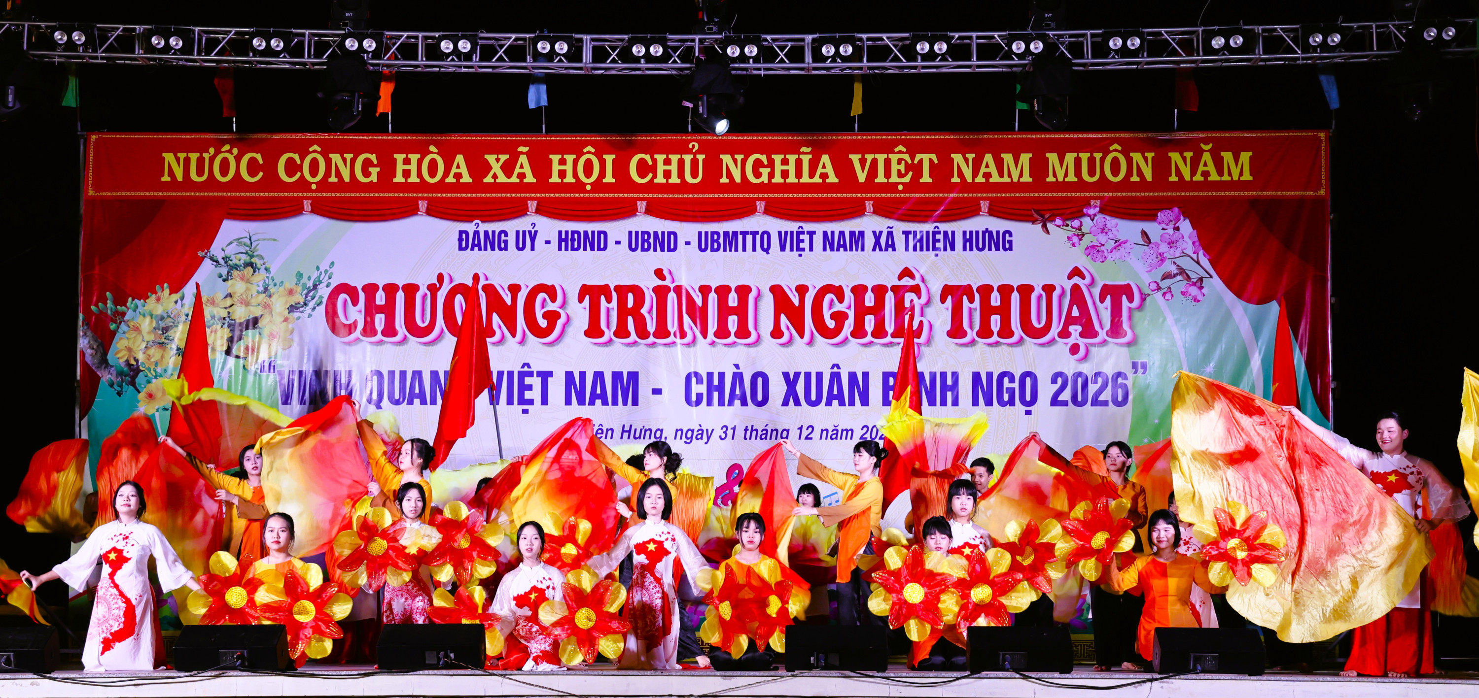 Phát biểu khai mạc chương trình đồng chí Phan Thị Thu Trang – Phó chủ tịch UBND xã cho biết: Chương trình nghệ thuật “Vinh quang Việt Nam – Chào Xuân 2026” là hoạt động ý nghĩa, góp phần tôn vinh truyền thống vẻ vang của Quân đội nhân dân Việt Nam; khơi dậy niềm tự hào dân tộc, tăng cường khối đại đoàn kết toàn dân, đồng thời tạo không khí vui tươi, ấm áp chào đón năm 2026. Đồng chí cũng mong muốn với khí thế phấn khởi của chương trình sẽ tiếp thêm động lực để cán bộ, đảng viên và Nhân dân xã Thiện Hưng bước vào năm mới với quyết tâm và thắng lợi mới.