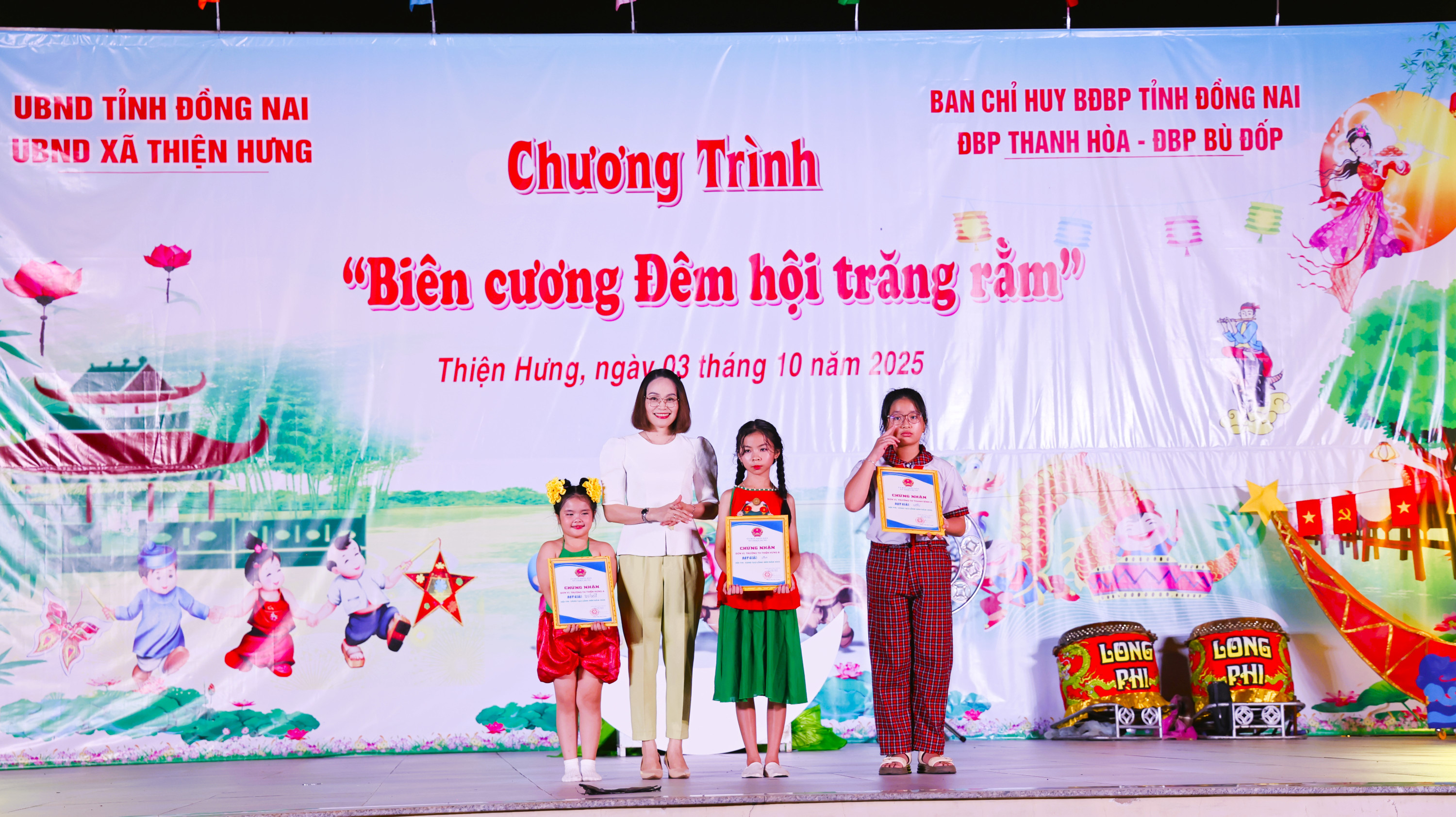 Ban tổ chức cũng đã trao tặng 365 phần quà, mỗi phần trị giá 200.000 đồng cho các em có hoàn cảnh khó khăn, trẻ em vùng biên giới, trẻ em mồ côi, khuyết tật….với mong muốn tất cả trẻ em đều được đón trung thu vui vẻ, đoàn kết.