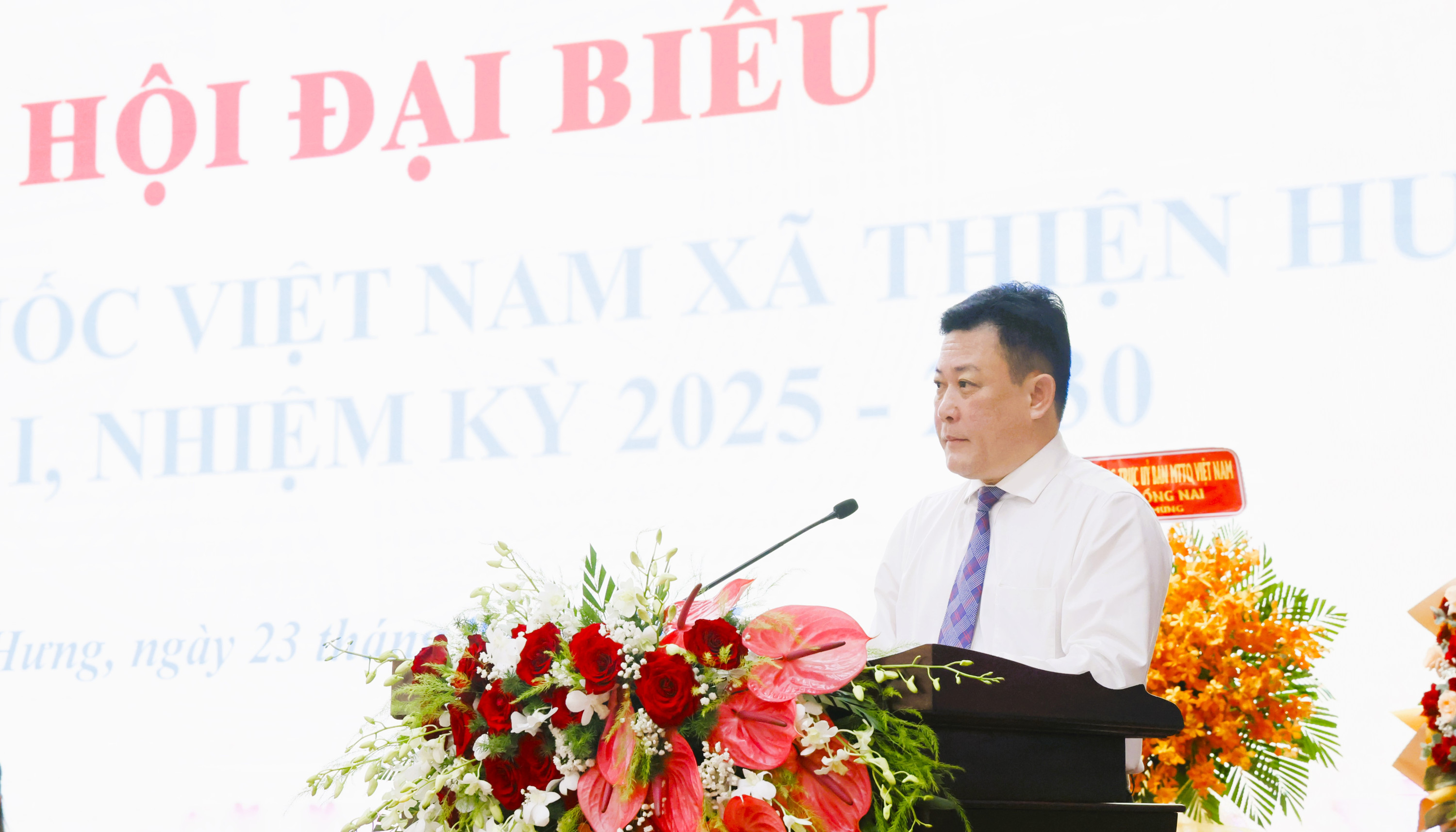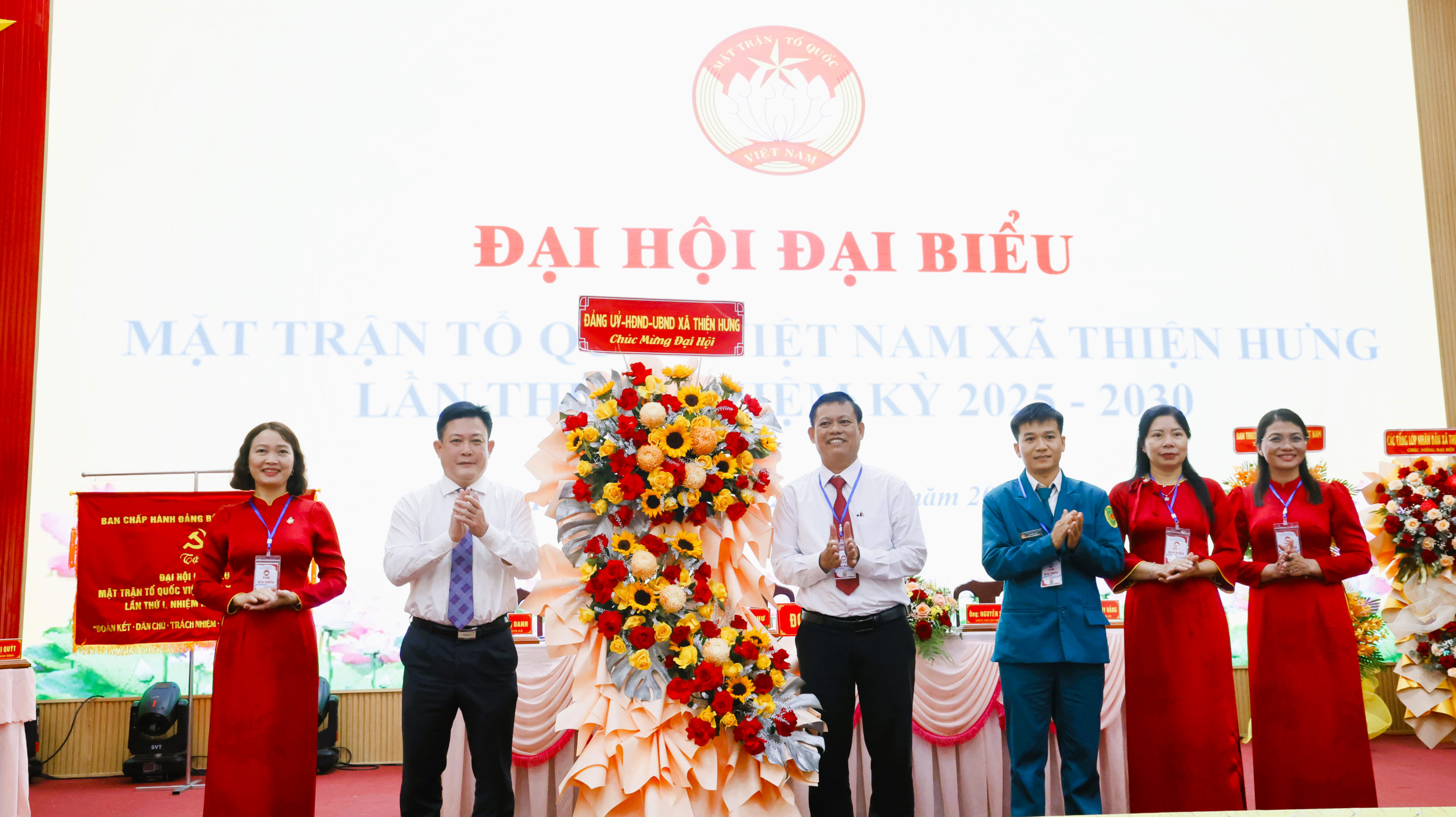 Phát biểu tại Đại hội, đồng chí Đặng Hà Giang – Tỉnh uỷ viên, Bí thư Đảng ủy, Chủ tịch HĐND xã ghi nhận và biểu dương những kết quả nổi bật của MTTQ xã Thiện Hưng trong nhiệm kỳ qua. Đồng chí cũng đề nghị MTTQ xã tiếp tục đổi mới nội dung, phương thức hoạt động; tăng cường tuyên truyền, vận động nhân dân chấp hành tốt chủ trương, chính sách của Đảng và Nhà nước, nhất là tuyên truyền việc thực hiện mô hình địa phương 2 cấp; phát huy dân chủ, thực hiện tốt công tác giám sát, phản biện xã hội, tích cực tham gia xây dựng Đảng, chính quyền vững mạnh.