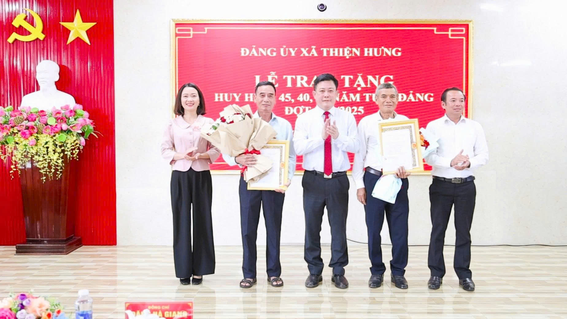 Bí thư Đảng uỷ xã Thiện Hưng cũng thông tin thêm: sau khi chính quyền địa phương hai cấp đã đi vào hoạt động ổn định, Đảng bộ xã đã lãnh đạo, chỉ đạo và tổ chức thành công Đại hội đại biểu Đảng bộ xã nhiệm kỳ 2025 - 2030; công tác tổ chức, bộ máy hoạt động hiệu quả; tình hình kinh tế xã hội - quốc phòng an ninh được đảm bảo…. Tính đến tháng 9-2025, Đảng bộ xã Thiện Hưng có 103 đảng viên được nhận Huy hiệu Đảng; trong đó có 01 đồng chí nhận Huy hiệu 75 năm tuổi Đảng, 01 đồng chí nhận Huy hiệu 65 năm, 03 đồng chí nhận Huy hiệu 60 năm….