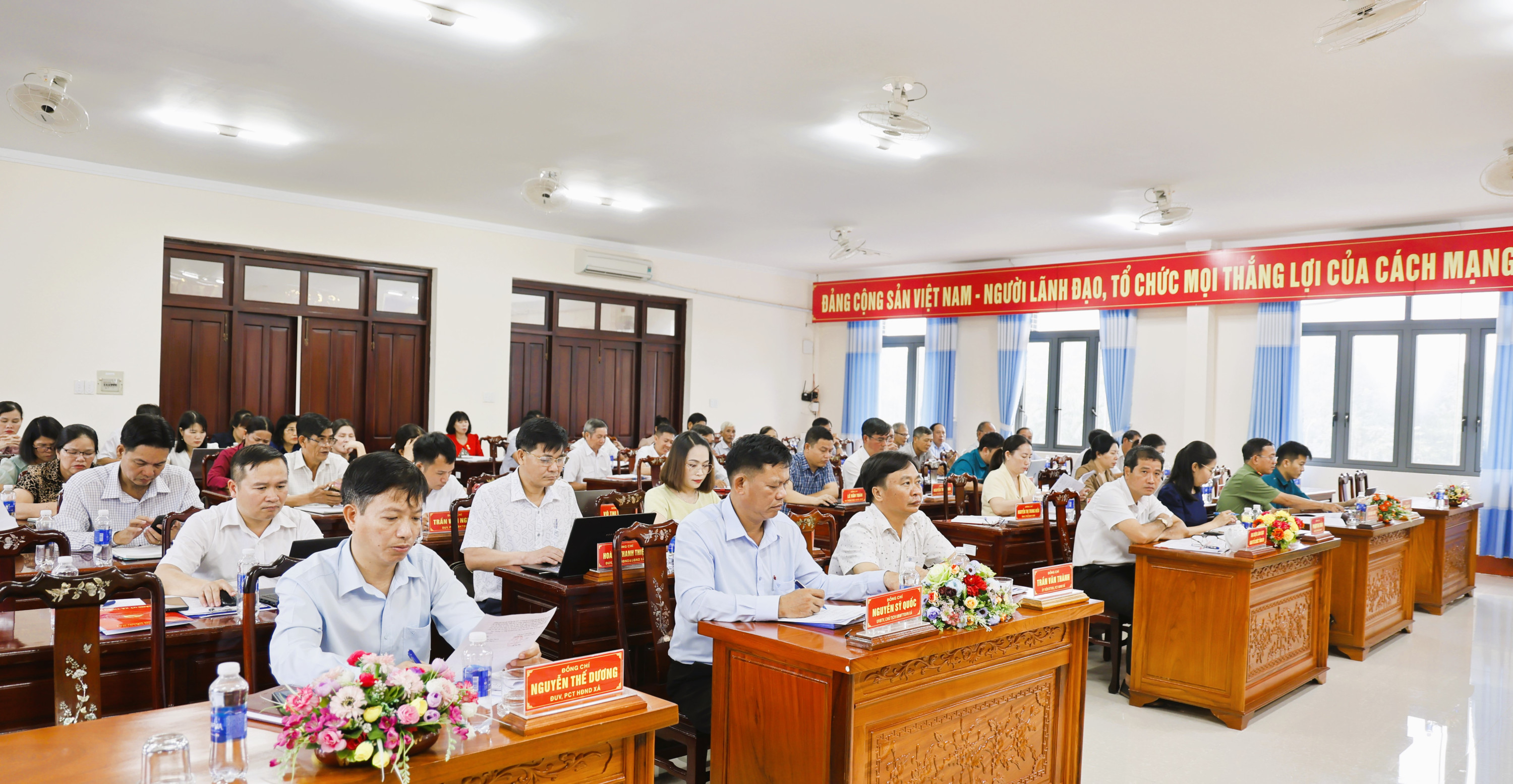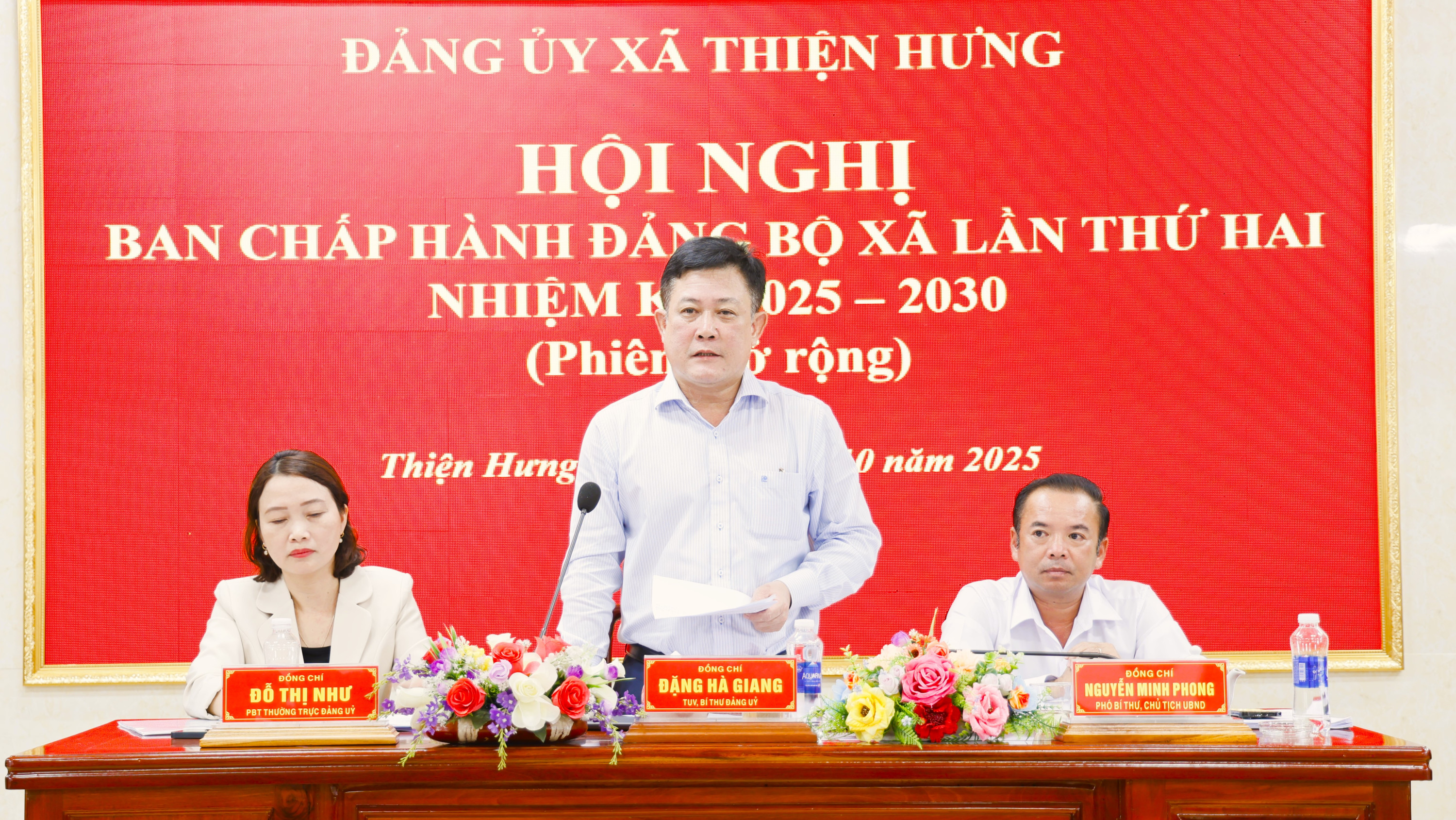 Tỉnh ủy viên, Bí thư đảng uỷ, Chủ tịch HĐND xã Đặng Hà Giang; Phó bí thư thường trực Đảng uỷ Đỗ Thị Như và Phó bí thư, Chủ tịch UBND xã Nguyễn minh Phong đồng chủ trì hội nghị.