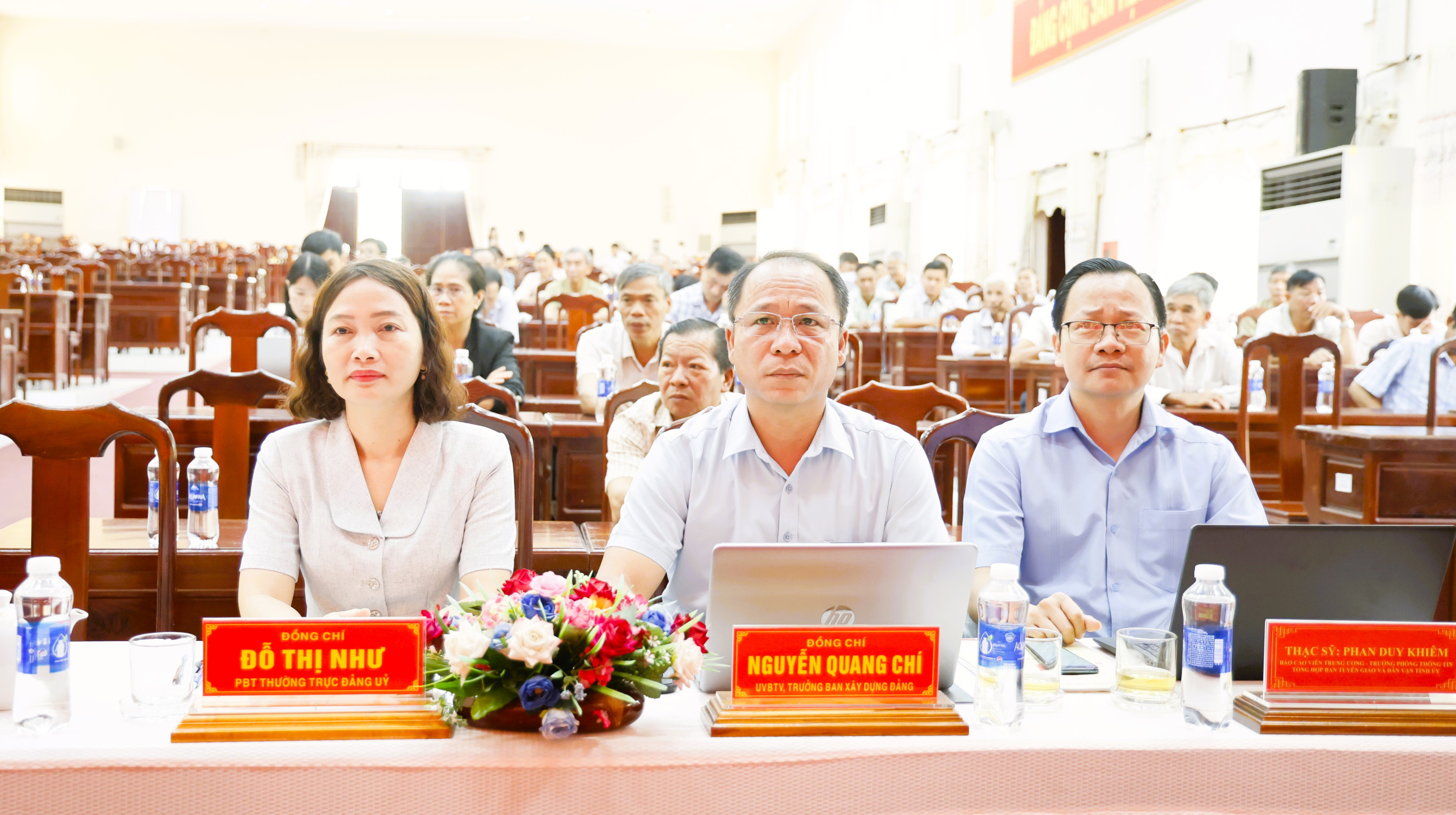 Báo cáo viên Phan Duy Khiêm – Thạc sỹ, Báo cáo viên Trung ương, Trưởng phòng Thông tin tổng hợp, Ban Tuyên giáo và Dân vận Tỉnh ủy thông tin các chuyên đề tại hội nghị