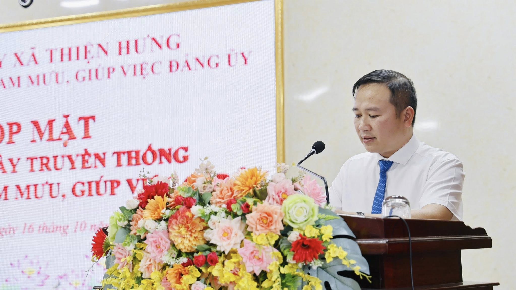 Tại buổi họp mặt, các đại biểu được nghe đồng chí Nguyễn Hữu Lê – Chánh văn phòng Đảng uỷ đã ôn lại truyền thống vẻ vang của các cơ quan tham mưu, giúp việc của Đảng qua các thời kỳ. Trải qua chặng đường lịch sử hình thành, xây dựng và trưởng thành, công tác tuyên giáo, tổ chức, dân vận, kiểm tra và văn phòng cấp ủy không ngừng được củng cố và phát triển, luôn khẳng định được vai trò đặc biệt quan trọng trong sự nghiệp cách mạng của Đảng ta. Đội ngũ cán bộ làm công tác Đảng có vai trò, vị trí quan trọng của trong sự nghiệp xây dựng và phát triển của địa phương.