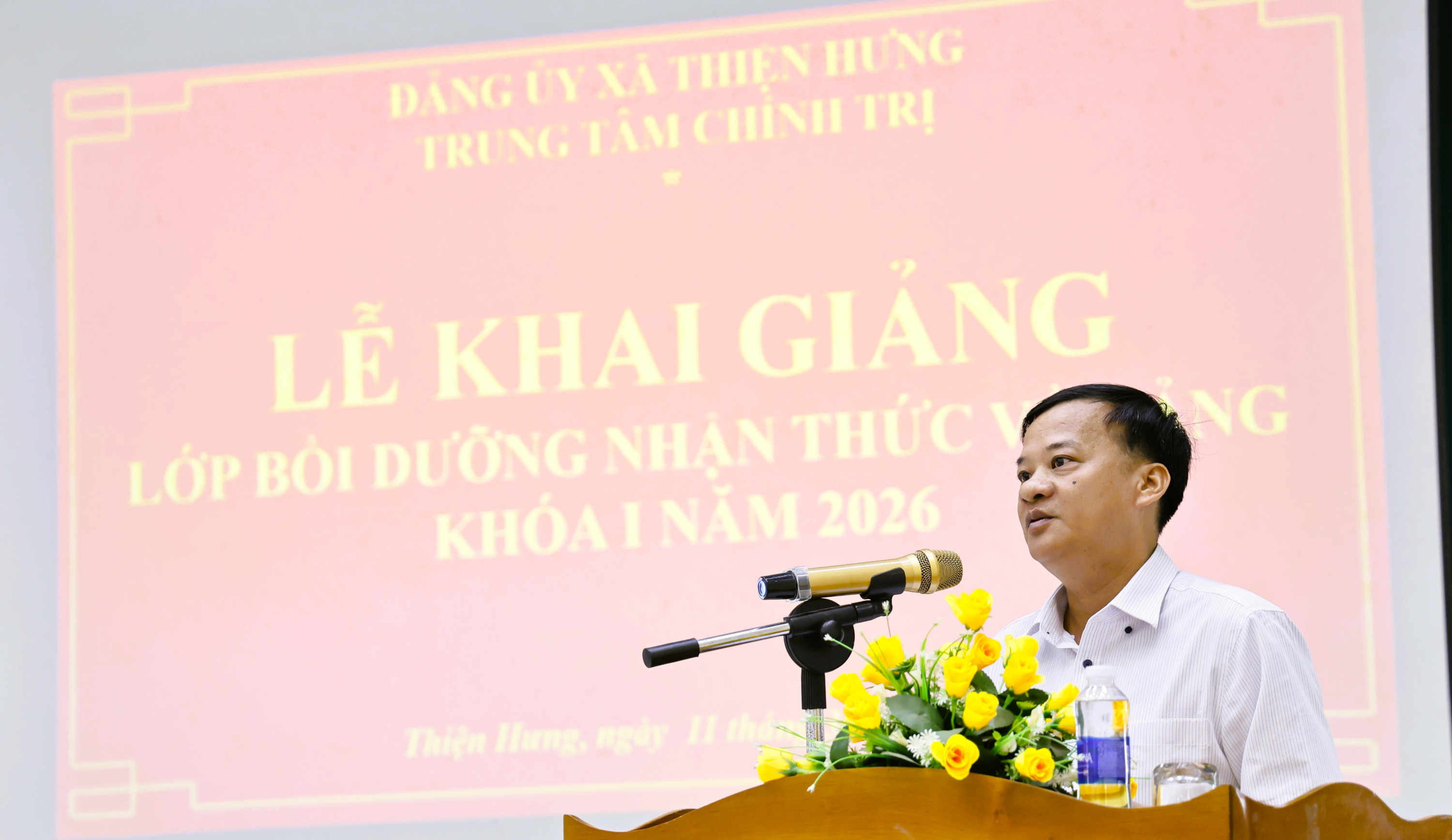 Phát biểu tại buổi khai giảng, đồng chí Lê Văn Thanh – Phó giám đốc Trung tâm chính trị xã Thiện Hưng nhấn mạnh: lớp bồi dưỡng là bước quan trọng trong quá trình rèn luyện, thử thách đối với mỗi quần chúng ưu tú trước khi được xem xét kết nạp Đảng. Đồng thời đề nghị các học viên nêu cao tinh thần trách nhiệm, nghiêm túc học tập, tích cực trao đổi, thảo luận để nắm vững nội dung chương trình; vận dụng kiến thức đã học vào thực tiễn công tác và đời sống.